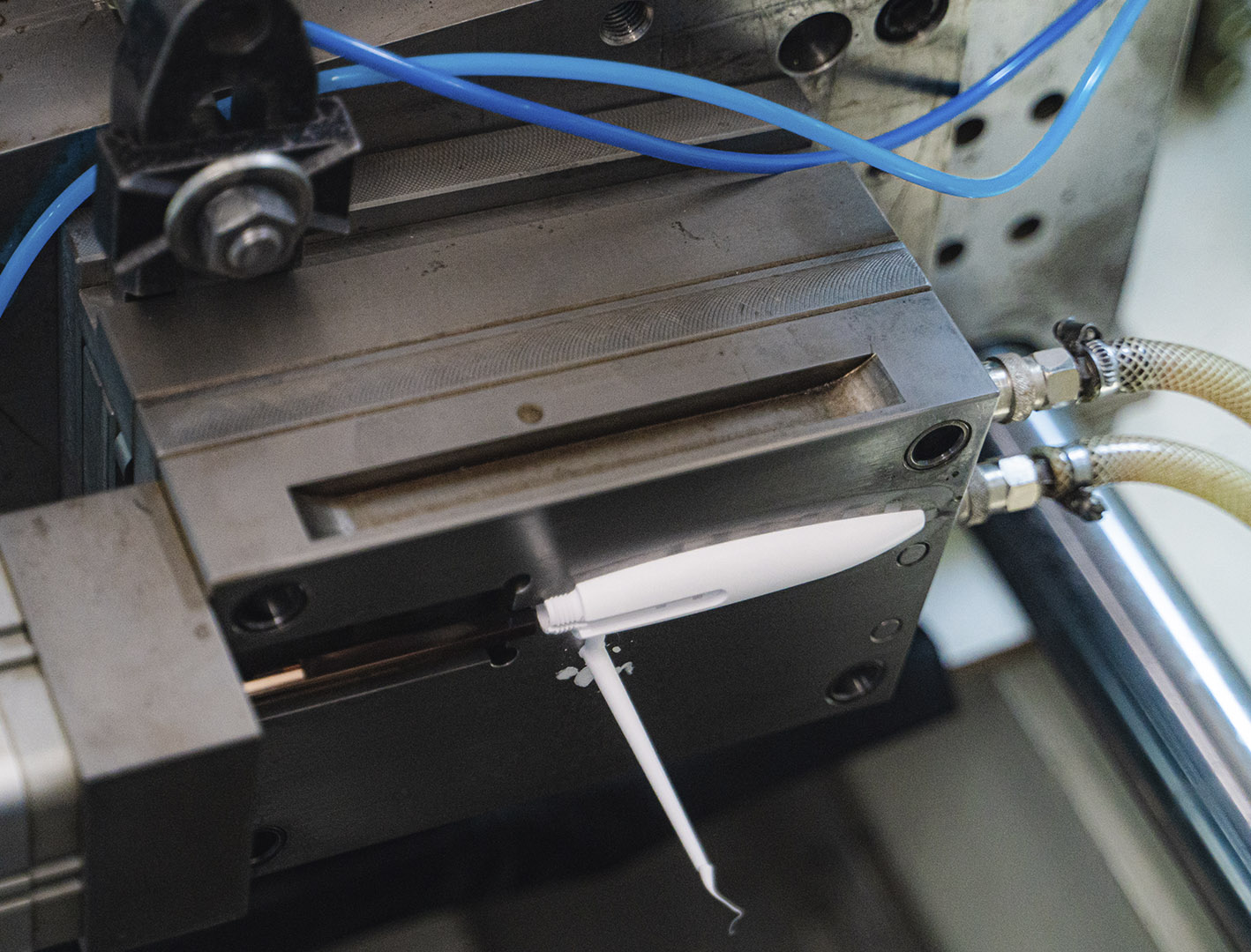 Desarrollo de productos plásticos y polímeros para la industria Disponemos de la tecnología necesaria para poder ofrecer soluciones integrales. Implementamos una conjunción de elementos para obtener los mejores resultados: software especializado, inyectoras con CNC Battenfeld y el control de todos los procesos por personal capacitado. Inyectamos piezas desde 1 a 250 grs. La sala blanca de inyección es un espacio especialmente diseñado y aislado para la fabricación de piezas y componentes para la industria de la medicina. Este tipo de sala se caracteriza por mantener un ambiente controlado, libre de partículas y microorganismos que puedan afectar la calidad y la seguridad de los productos fabricados. Dentro de esta sala, se encuentra una inyectora Battenfeld de CNC, que es una máquina de moldeo por inyección altamente precisa y eficiente. Esta máquina cuenta con una capacidad de inyección de hasta 250 gramos, lo que permite la fabricación de piezas de diferentes tamaños y formas, adaptándose a las necesidades específicas de cada proyecto. La inyectora cuenta con un sistema de control inteligente de parámetros que garantiza la obtención de piezas con calidad «Premium», cumpliendo con los más altos estándares de la industria médica. Además, la máquina cuenta con una alta velocidad de inyección y una fuerza de cierre que permite la producción de piezas en grandes volúmenes en un corto período de tiempo.